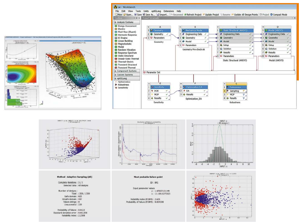它包含敏感度分析和鲁棒性评估模块,并且能够与ANSYS Mechanical、ANSYS Fluent等ANSYS工具建立简便的交互过程链。